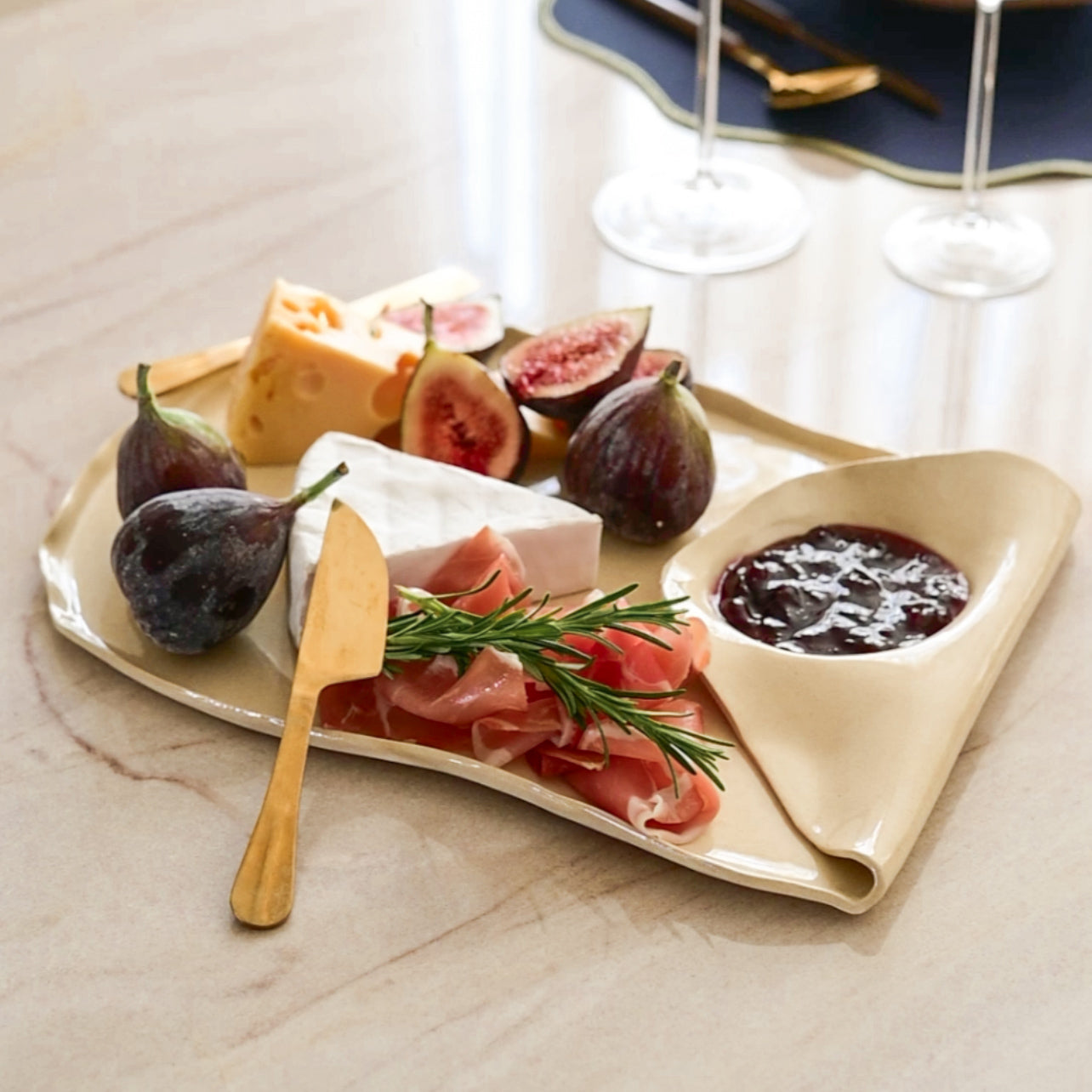 Tábua Orgânica em Cerâmica Artesanal com Molheira