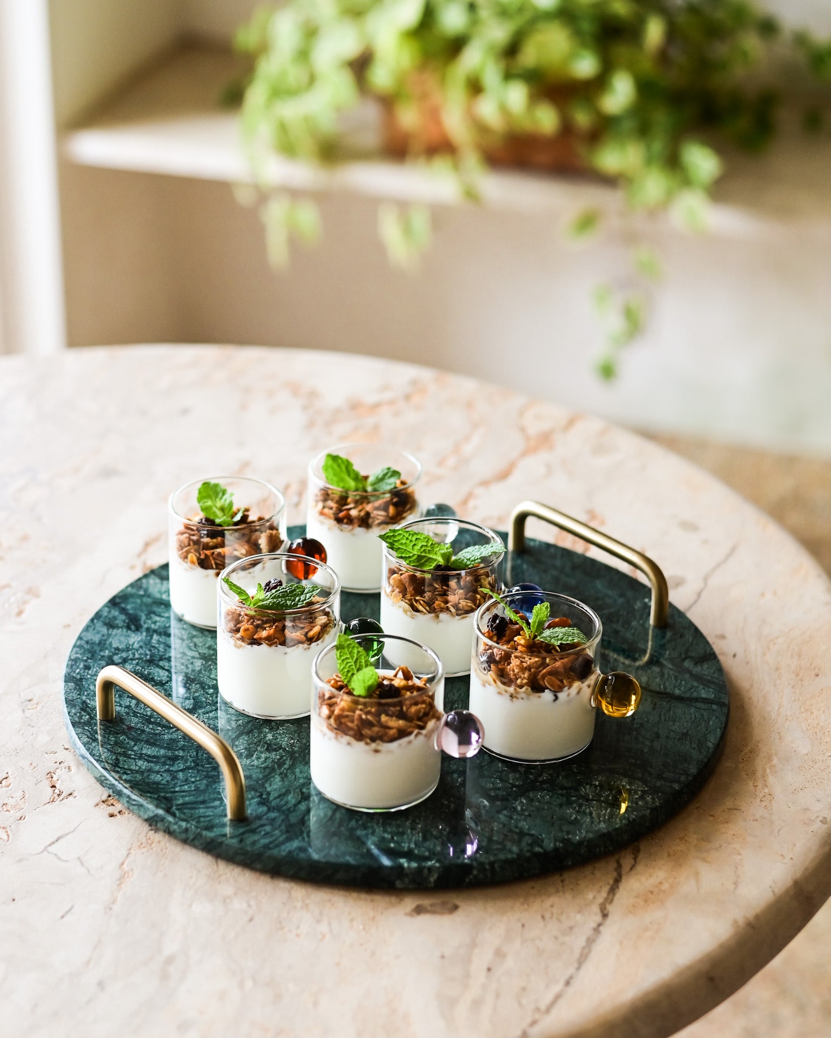 Bandeja redonda em mármore verde com alças em inox dourado, uma peça sofisticada que une beleza natural e funcionalidade. Ideal para servir bebidas, petiscos, cafés ou como apoio decorativo. O mármore verde natural traz exclusividade e elegância, enquanto as alças metálicas douradas garantem praticidade e um toque contemporâneo. Perfeita para composições modernas, minimalistas ou clássicas, é um item durável e versátil para transformar sua decoração.