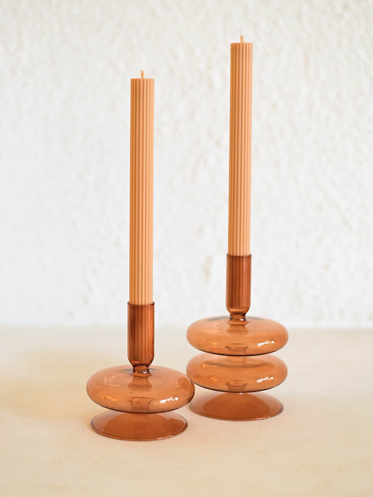 Castiçal Vintage em Vidro Terracota 12,5 cm