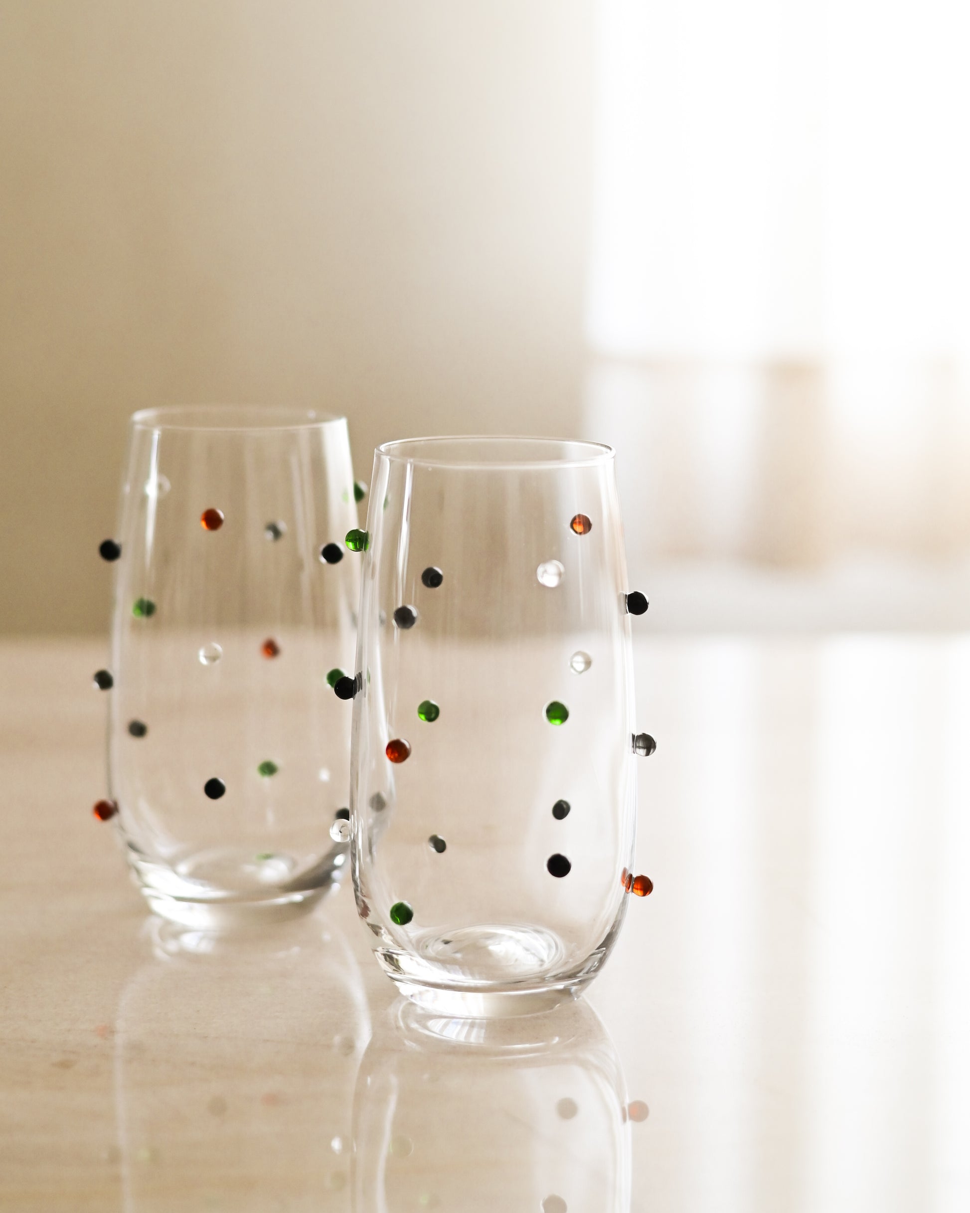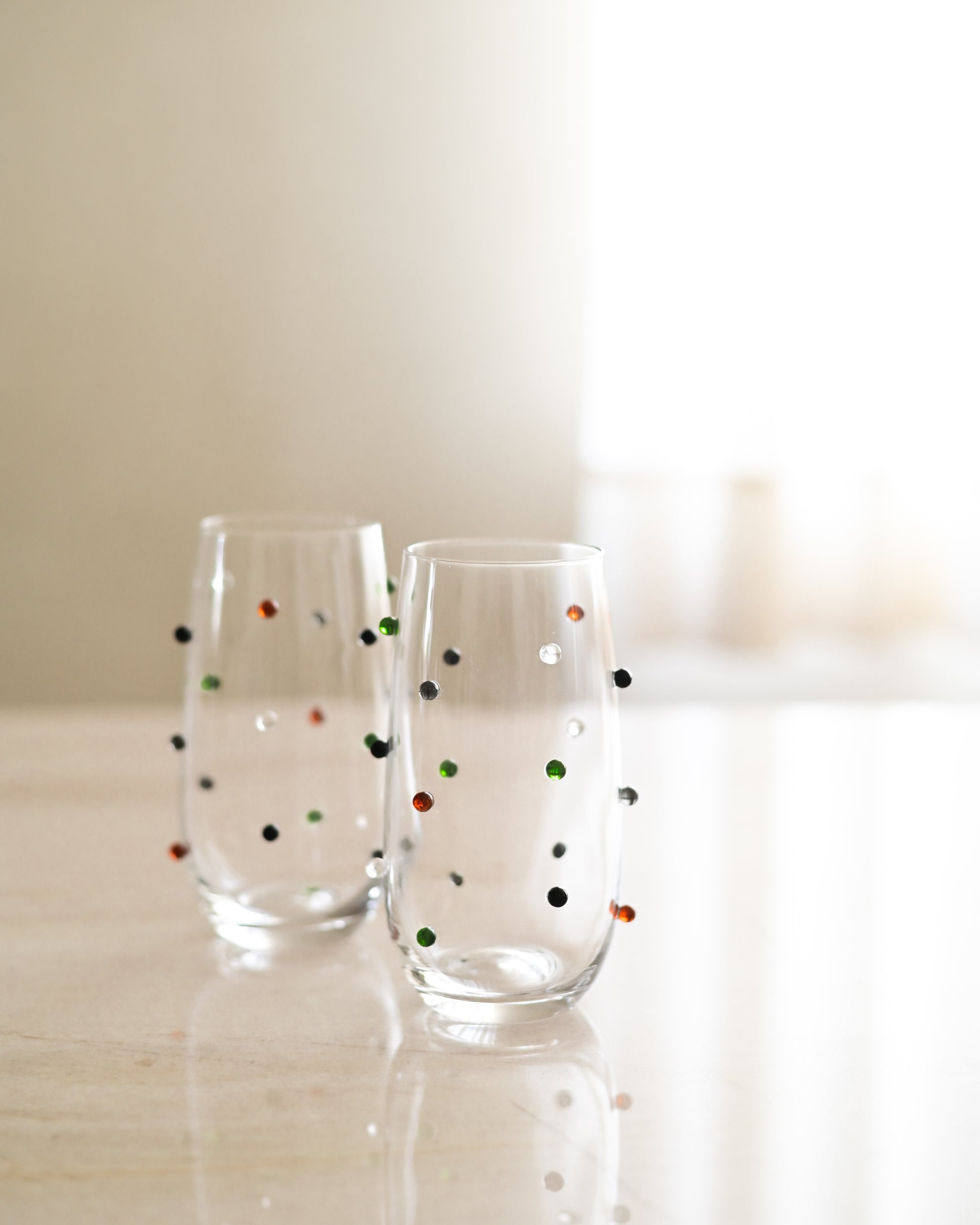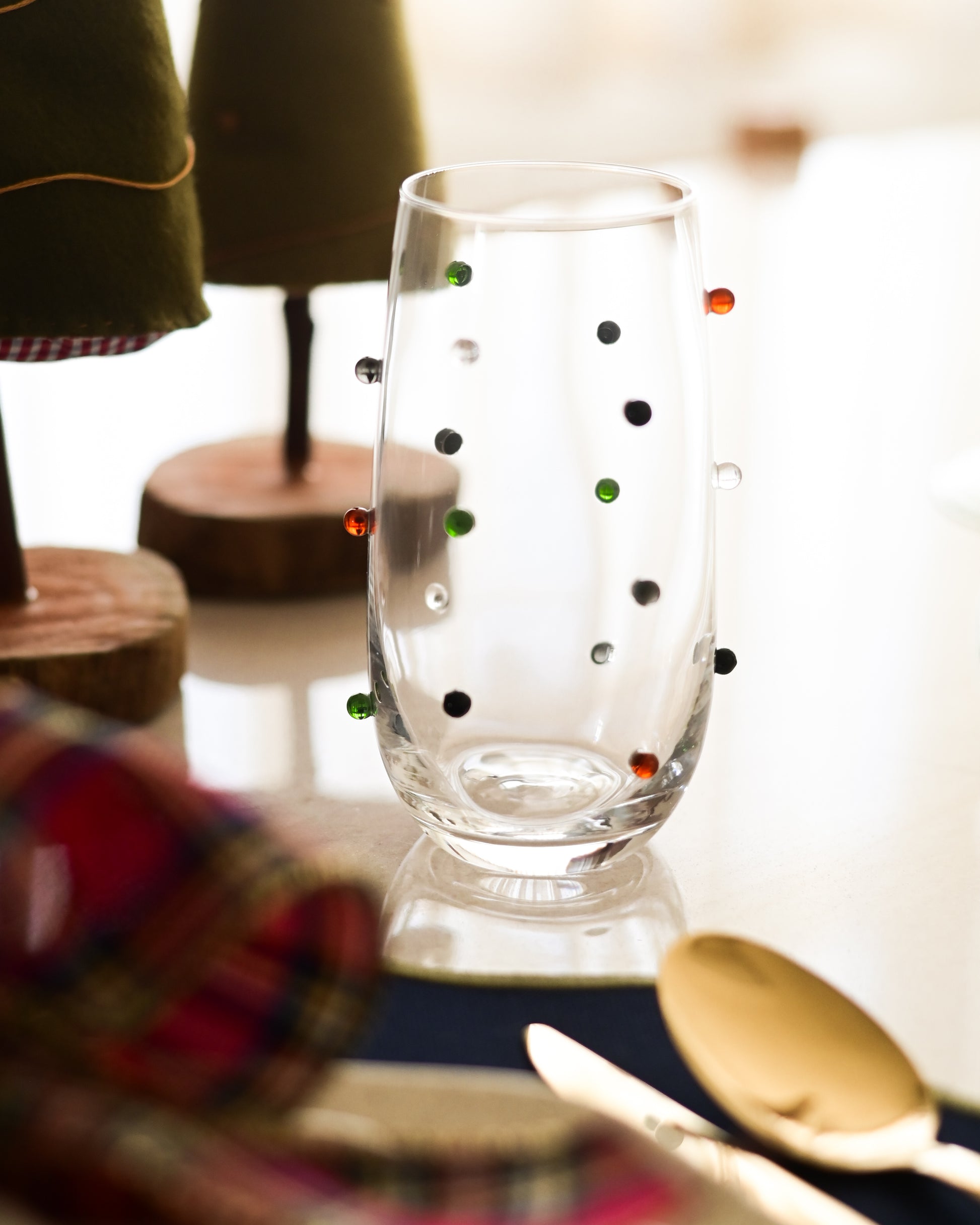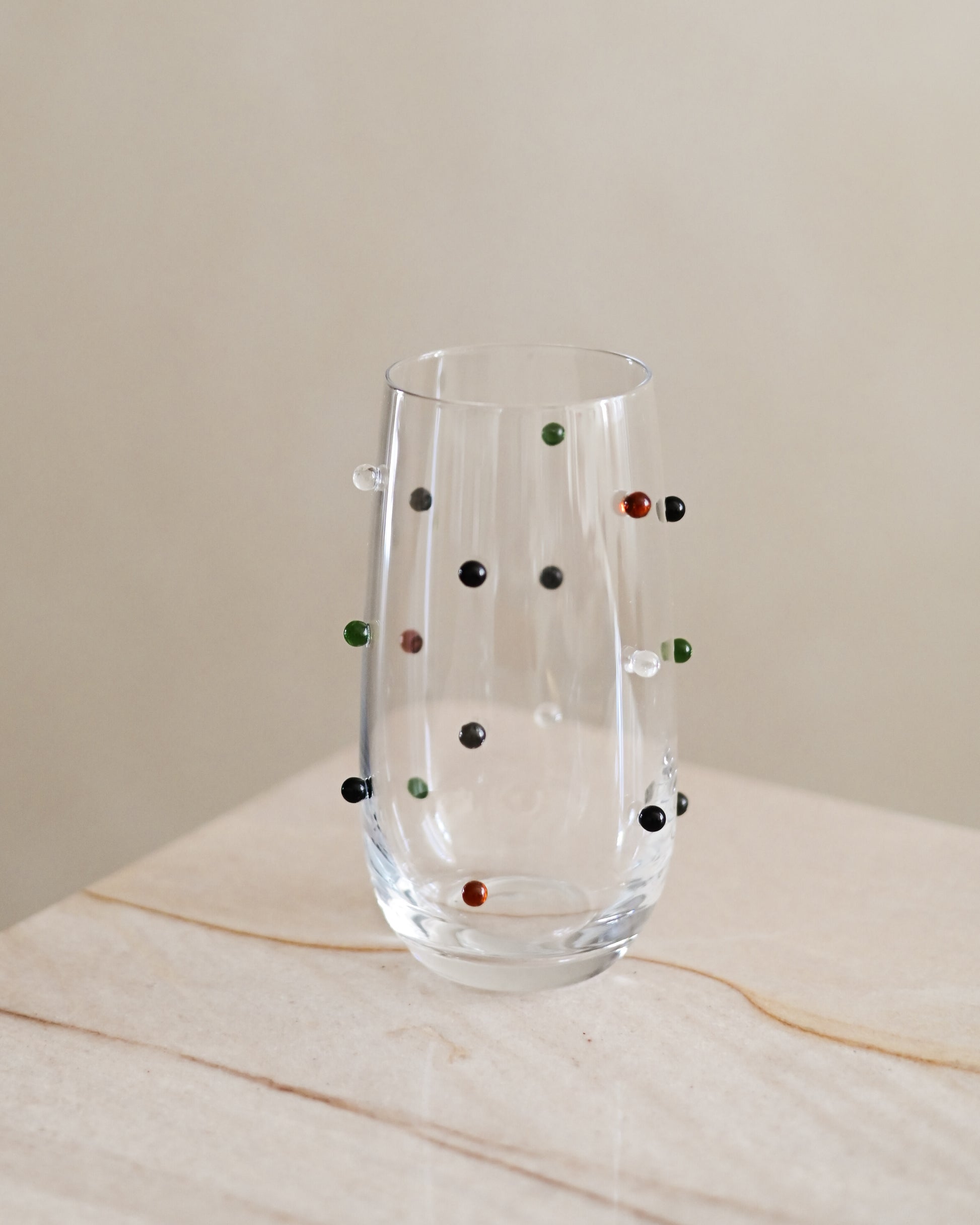 Copo de Vidro com mini esferas Coloridas em Relevo – Elegância Divertida para sua Mesa.