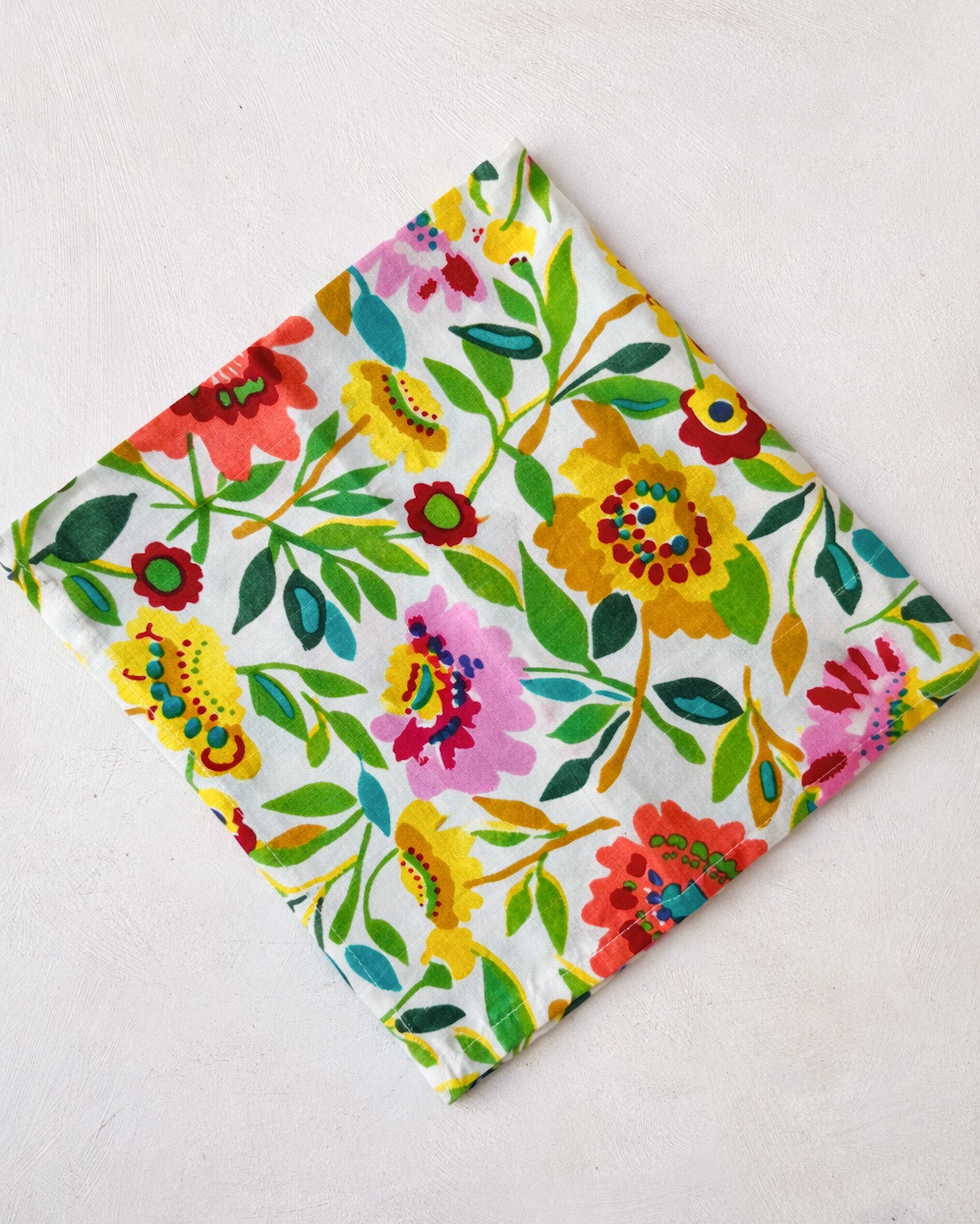 O Guardanapo Floral Colorido é a escolha ideal para quem deseja transformar a mesa posta em um verdadeiro destaque de decoração. Com estampa botânica vibrante e composição delicada de flores e folhagens, ele adiciona charme, personalidade e elegância a qualquer ocasião. Perfeito para compor mesa posta romântica, almoço especial, jantar decorado ou eventos ao ar livre, o design floral traz frescor e leveza ao ambiente.