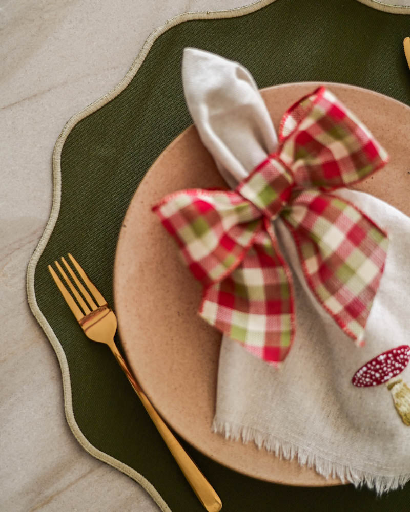 Jogo Americano Dupla Face Verde Militar e Fendi com costura em Fendi