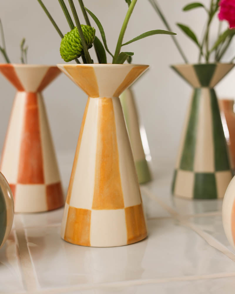 Leve personalidade, versatilidade e charme para à mesa posta ou no décor de um cantinho especial! Feito em cerâmica artesanal, este mini vaso solitário é uma peça feita toda à mão, com design minimalista e contemporâneo, vai abrigar mini arranjos de forma especial! Potencialize a composição dos seus dias combinando flores frescas ou secas com esta peça!