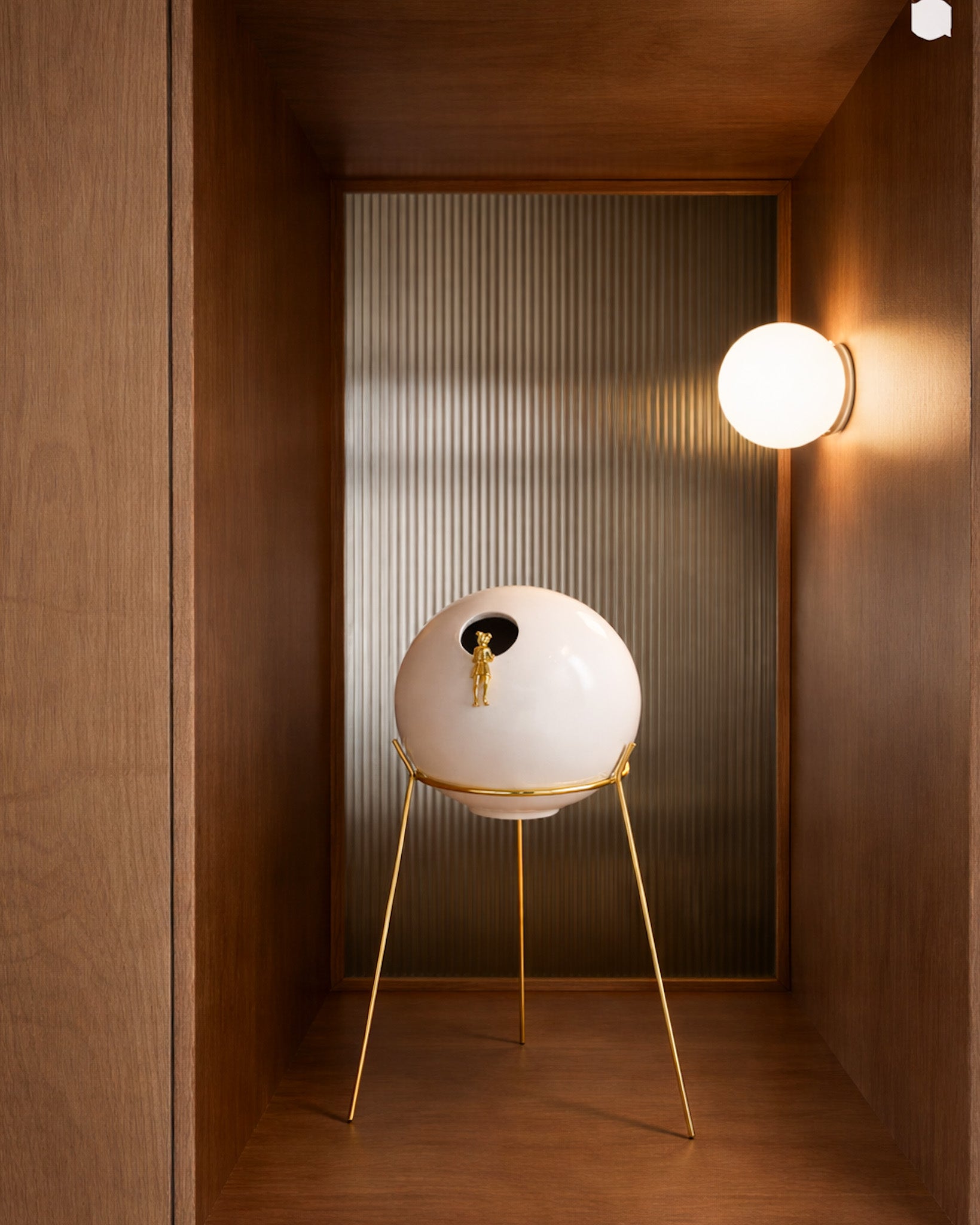O Vaso Bola com Menina Banhado a Ouro, da artista Nara Ota, é uma peça que transita entre o objeto utilitário e a obra de arte. A forma esférica, contrasta com a delicadeza da menininha banhada a ouro, posicionada como um detalhe poético e surpreendente. Uma peça especial e escultórico que imprime identidade ao ambiente, ideal para interiores que valorizam arte, curadoria e design autoral.
