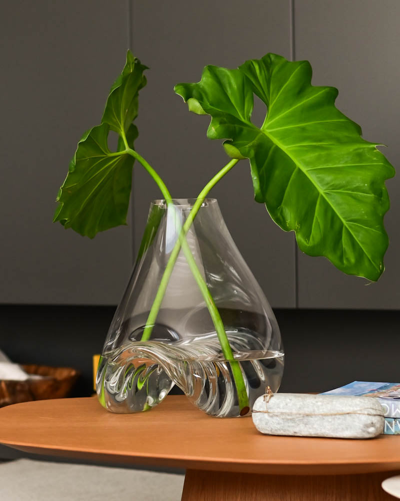 Peça única vista como obra de arte: Devido ao processo manual de fabricação, cada vaso é exclusivo. Com sua aparência graciosa e translúcida, o Vaso Mola em Vidro Soprado adiciona um toque de elegância, autenticidade e sofisticação a qualquer espaço.