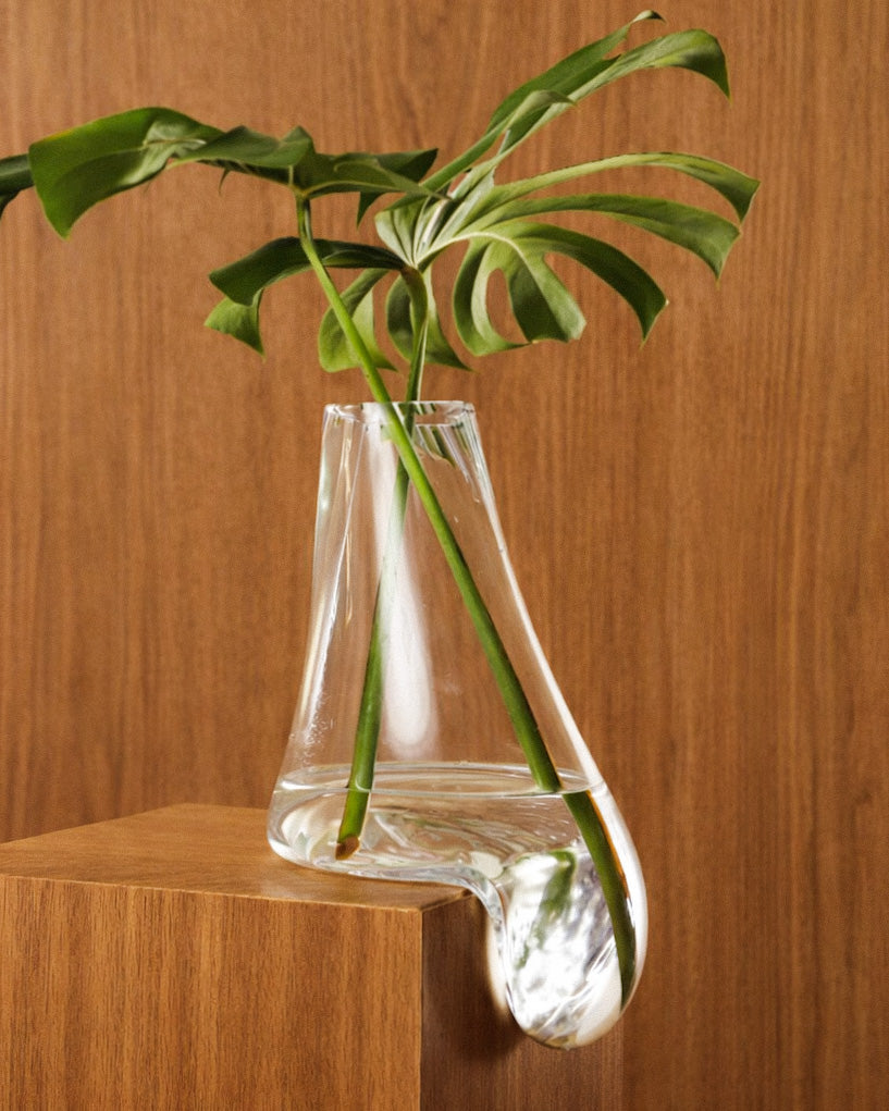 Design por Studio Pedrazzi. Produzido de forma artesanal utilizando a técnica do vidro soprado feito artesanalmente, a peça soprada adquire possui características únicas, resultando em uma obra de arte singular. Seu design personalizado e exclusivo, permite que você utilize o vaso de diferentes formas, como de encaixe em prateleiras e estantes.
